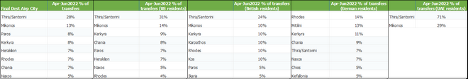 Από τους Βρετανούς που έφτασαν στην Αθήνα από τον Απρίλιο έως το Μάιο του 2022 και πέταξαν απευθείας σε άλλους προορισμούς, το 24% πήγε στη Σαντορίνη, το 10% στη Μύκονο και ίδιο ποσοστό στην Κέρκυρα. Άλλο ένα 10% πήγε στην Κάρπαθο, ίδιο ποσοστό και στη Ρόδο και την Κω και από 5% στην Πάρο και την Ικαρία.
