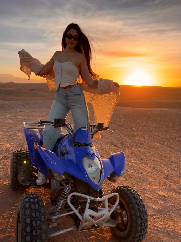 Νωρίς το απόγευμα αναχωρήσαμε για την έρημο Agafay. Η έρημος αυτή βρίσκεται μόλις 45 λεπτά από το Μαρακές. Μια βραχώδης έρημος στην οποία θα είχαμε ευκαιρία να διαλέξουμε ανάμεσα σε διάφορες δραστηριότητες. Επικρατέστερες επιλογές ήταν να κάνουμε βόλτα με γουρούνα 4Χ4 ή να γίνουμε μέρος ενός παραδοσιακού καραβανιού με καμήλες. Εμείς επιλέξαμε το πρώτο… τρομερή αδρεναλίνη! Ο Βερβερός εκπαιδευτής μας μας καθοδήγησε μέσα από τους λόφους, μας σταμάτησε στα καλύτερα σημεία για να απολαύσουμε το ηλιοβασίλεμα (και να βγάλουμε τις ωραιότερες φωτογραφίες), μας πέρασε δίπλα από ένα μυστικό χωριό – χωμένο στην έρημο, ενώ μας έδειξε και ορισμένους πανύψηλους βράχους – θαύματα της φύσης!