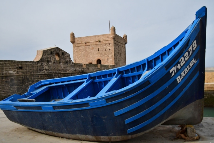 Η τρίτη μέρα μας έδωσε την ευκαιρία να γνωρίσουμε την παραθαλάσσια πόλη της Εσσαουίρα, η οποία βρέχεται από τα ψηλά κύματα του Ατλαντικού. Γι’ αυτό το λόγο άλλωστε αποτελεί και μοναδικό προορισμό για surfers από όλο τον κόσμο. Η Εσσαουίρα έχει να καυχιέται και την πρωτιά στην παραγωγή argan από τα οποία προέρχεται το πανάκριβο Arganoil. Η Εσαουίρα είναι μια εντοιχισμένη καστροπολιτεία με έντονο νησιώτικο χρώμα – πρώτο μας σχόλιο όταν φτάσαμε πως «μας θυμίζει κάτι από Κυκλάδες». Η κωμόπολη αυτή αναπτύχθηκε το 16ο αιώνα από τους Πορτογάλους (με την τότε ονομασία «Mogador»), λόγω της ασφάλειας που παρείχε το φυσικό της λιμάνι από τους αέρηδες του Ατλαντικού. Για αυτό και ξεκινήσαμε την ξενάγησή μας από το λιμάνι, όπου είδαμε από κοντά τις χαρακτηριστικές μπλε βάρκες καθώς και τους ψαράδες.