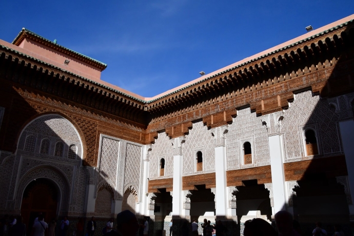 Κατά τη διάρκεια της ξενάγησής μας, ξεκινήσαμε με το εντυπωσιακό τζαμί Κουτούμπια με τον πανύψηλο μιναρέ του. Μπροστά του απλώνεται ένας κήπος ήρεμος και χαλαρός και παρά το γεγονός ότι βρίσκεται στην καρδιά της πόλης, προσφέρει μια καταπληκτική ηρεμία. Συνεχίζουμε για το Κεζμπάχ, τη συνοικία μέσα από τα τείχη της πόλης, η οποία περιοχή έχει διατηρηθεί αναλλοίωτη στο χρόνο. Η βόλτα μας καταλήγει στο παλάτι Μπαχία, το οποίο χτίστηκε για τα μάτια της όμορφης ομώνυμης πριγκίπισσας. Η εξωτερική όψη δεν προετοιμάζει τον ταξιδιώτη για αυτό που θα αντικρίσει μέσα… Γεωμετρικά σχήματα, υπέροχοι κήποι, βασιλικές αίθουσες και εντυπωσιακά χαρέμια μας ταξίδεψαν στον χρόνο.