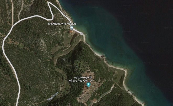 Πετάμε πάνω από την “παραλία των γυμνιστών” στη Ραμνούντα που απλώνεται ακριβώς κάτω από το Ιερό της Ραμνουσίας Νεμέσεως.