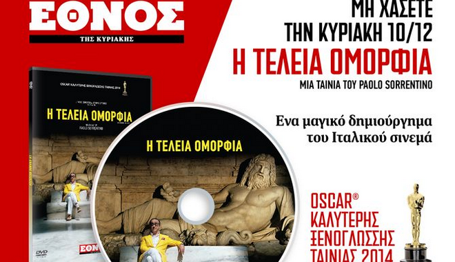 Η βραβευμένη με ΟΣΚΑΡ ξενόγλωσσης ταινίας “Η Τέλεια Ομορφιά” του Πάολο Σορρεντίνο έρχεται στο ΕΘΝΟΣ της ΚΥΡΙΑΚΗΣ στις 10/12. Η ταινία που διαγωνίστηκε στο εξηκοστό έκτο Φεστιβάλ Κινηματογράφου Καννών απέσπασε επίσης Χρυσή Σφαίρα και Βραβείο BAFTA καλύτερης ξενόγλωσσης ταινίας. Ένα μαγικό δημιούργημα του Ιταλικού σινεμά που ενθουσίασε τους κριτικούς όλου του κόσμου!