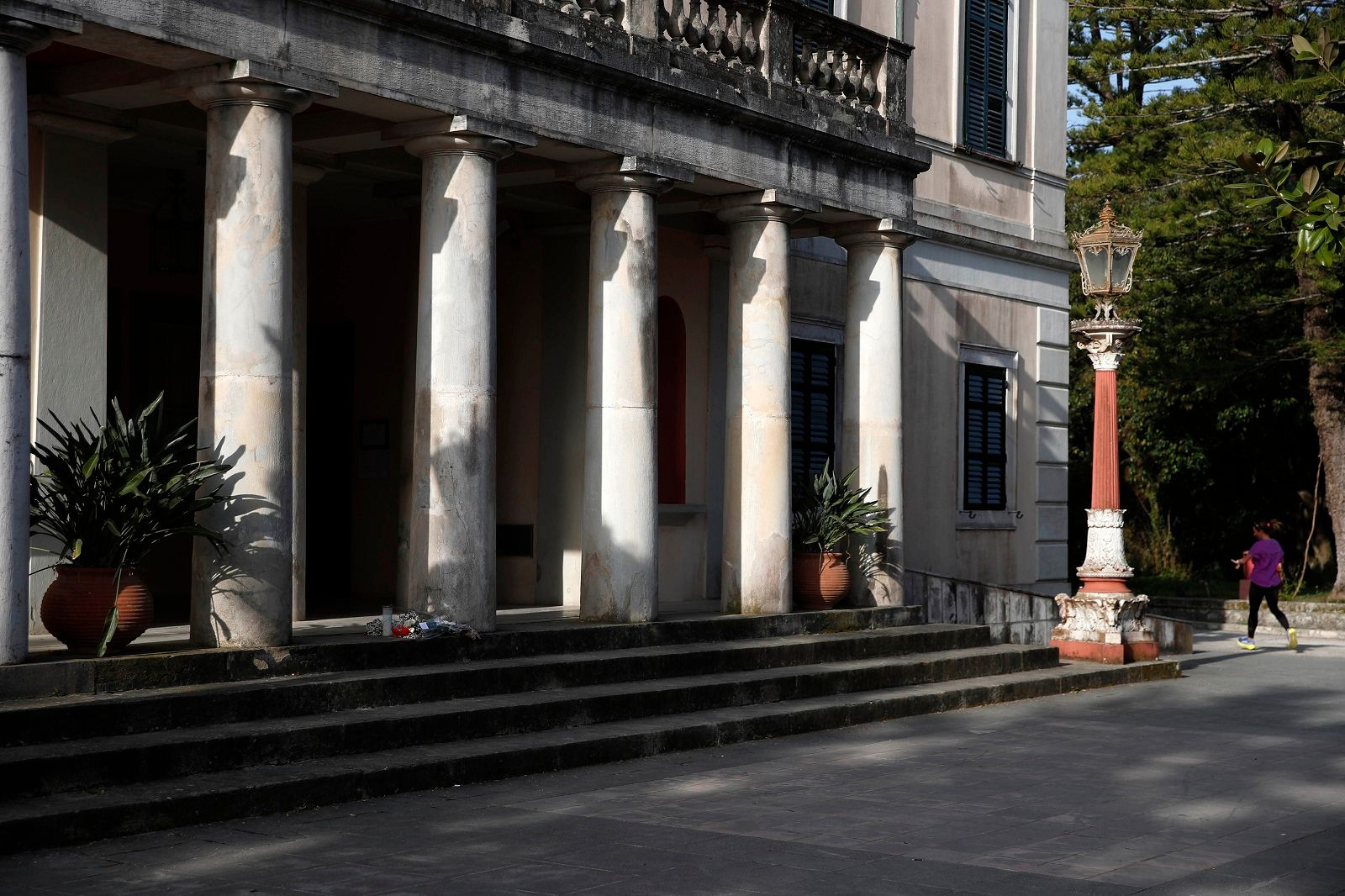 Το κομψό «πομπηιανού ρυθμού» κτήριο με τα έντονα νεοκλασικά στοιχεία και τα πολυτελή σαλόνια είναι επισκέψιμο και είναι από τα πλέον εντυπωσιακά του νησιού. Στους κήπους του θα θαυμάσετε το υπέροχο άγαλμα του Αχιλλέα Θνήσκοντος.