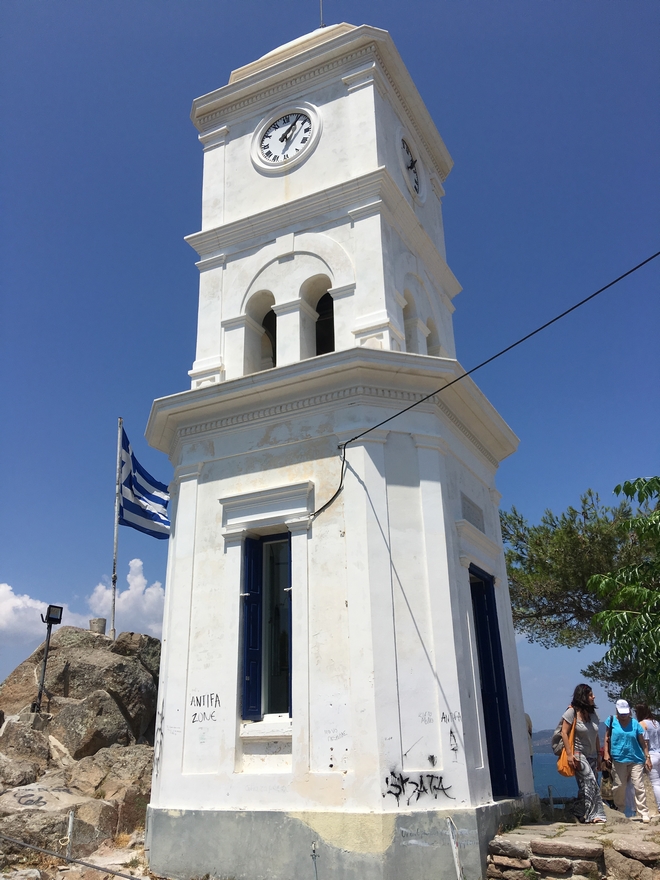 Το ιστορικό ρολόι, δωρεά του έμπορου και βουλευτή Ιωάννη Παπαδόπουλου, υψηλά στο λόφο της Σφαιρίας, στο κέντρο του Πόρου, αποτελεί σήμα κατατεθέν του νησιού.