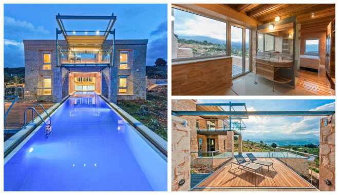 Η επόμενη επιλογή είναι πολύ πιο οικονομική. Στο βαθμό που αν σκεφτείτε πως μπορεί να φιλοξενήσει έως 8 άτομα, τότε όλοι έχουμε δικαίωμα στη μίσθωση της (349 δολάρια, η διανυκτέρευση). Η βίλα που βρίσκεται στον Αποκόρωνα Χανίων, έχει τέσσερα υπνοδωμάτια, 3 μπάνια και ατελείωτη θέα στη Σούδα, από τη μία και τα Λευκά Όρη, από την άλλη. Όπως θα μαντέψατε δεν επιτρέπονται κατοικίδια και κάπνισμα και υπάρχουν όλα όσα μπορείτε να χρειαστείτε.