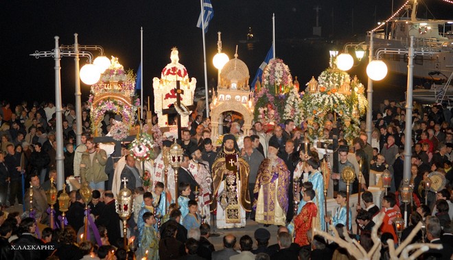 Μάλιστα, οι Επιτάφιοι από όλες τις ενορίες καταλήγουν στην εξέδρα, στην παραλία της Χώρας της Τήνου όπου συναντιούνται.