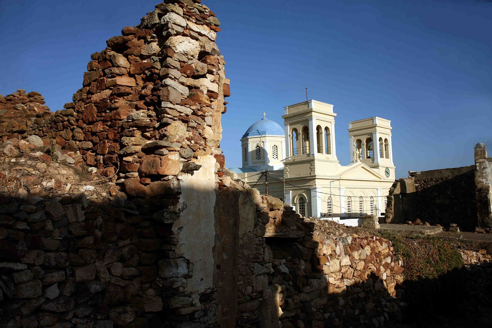 Στο Χωριό χτυπά η καρδιά του νησιού, εκεί θα πιείτε τον καφέ σας το πρωί, θα κάνετε βόλτες στα φρεσκοασβεστωμένα στενάκια του και θα αφεθείτε στη γαλήνη του κυκλαδίτικου τοπίου. Πυρήνας του χωριού, το μεσαιωνικό κάστρο, ένας οχυρωμένος οικισμός με ξεχωριστή αρχιτεκτονική. Αποτελείται από τους οικισμούς του Mέσα Kάστρου και του Έξω Kάστρου, που συγκοινωνούν με τις πορτάρες (περάσματα). Οι εξωτερικοί τοίχοι των σπιτιών ενώνονται δημιουργώντας οχυρωματικό περίβολο. Στη βόλτα σας στο Χωριό θα εντυπωσιαστείτε από τον αριθμό των εκκλησιών του, που φαίνονται να ξεφυτρώνουν σε κάθε του γωνιά. Αξίζει να δείτε την Παναγία του Κονόμου, τον Χρυσόστομο του 17ου αιώνα, αλλά και τον Παντοκράτορα.