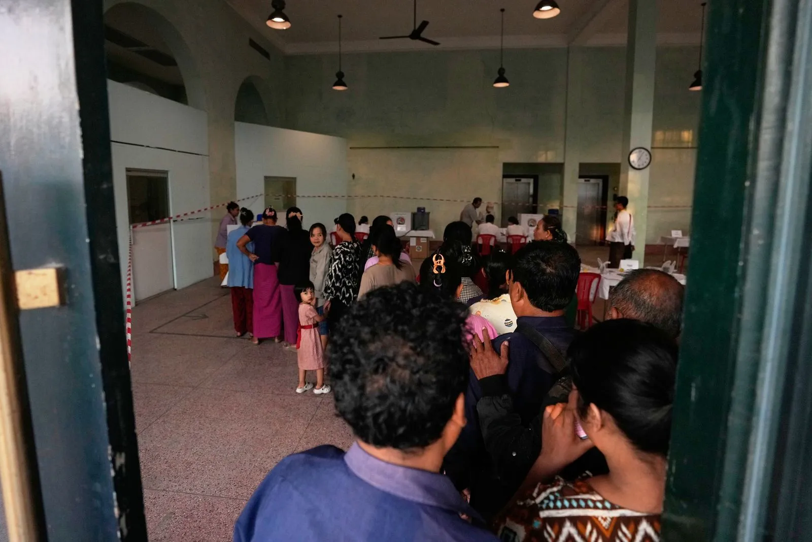Οι ψηφοφόροι σχηματίζουν ουρά για να ψηφίσουν σε εκλογικό τμήμα στη Γιανγκόν της Μιανμάρ. AP Photo/Thein Zaw