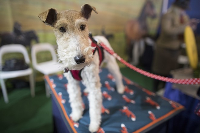 Shamus, a wire fox terrier, is shown during the meet the breeds companion event to the Westminster Kennel Club Dog Show, Saturday, Feb. 10, 2018, in New York. (AP Photo/Mary Altaffer) AP