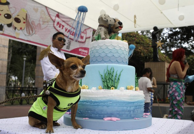 A Chihuahua dog rest next to a marriege cake in the San Isidro district of Lima, Peru, on Saturday, February 10, 2018. Some ten dog couples attended a massive dog wedding ceremony in a pre-celebration of Valentine's Day. (AP Photo/Martin Mejia) AP