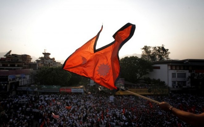 Η μοναδική εθνική σημαία στον κόσμο που δεν έχει ορθές γωνίες, αλλά δύο τρίγωνα, συμβολίζει με αυτά τις βουνοκορφές των Ιμαλαΐων. Ο ήλιος και το φεγγάρι συμβολίζουν την αιωνιότητα, ότι το κράτος του Νεπάλ θα διαρκέσει όσο τα ουράνια σώματα θα βρίσκονται στο στερέωμα.