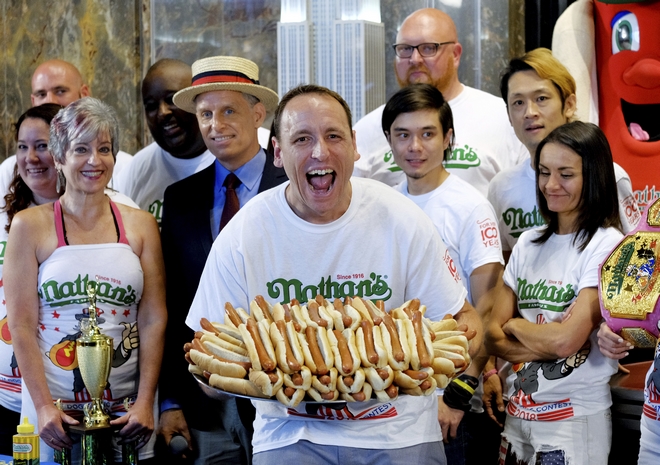 Κάθε χρόνο στις 4 Ιουλίου στο Coney Island πραγματοποιείται ο διάσημος διαγωνισμός φαγητού Nathan’s στη Νέα Υόρκη. Περίπου 20 συμμετέχοντες κάθονται ο ένας δίπλα στον άλλο μπροστά σε ένα τραπέζι μήκους εννέα μέτρων και καλούνται να καταβροχθίσουν όσα περισσότερα χοτ ντογκ αντέχουν σε διάστημα δέκα λεπτών.