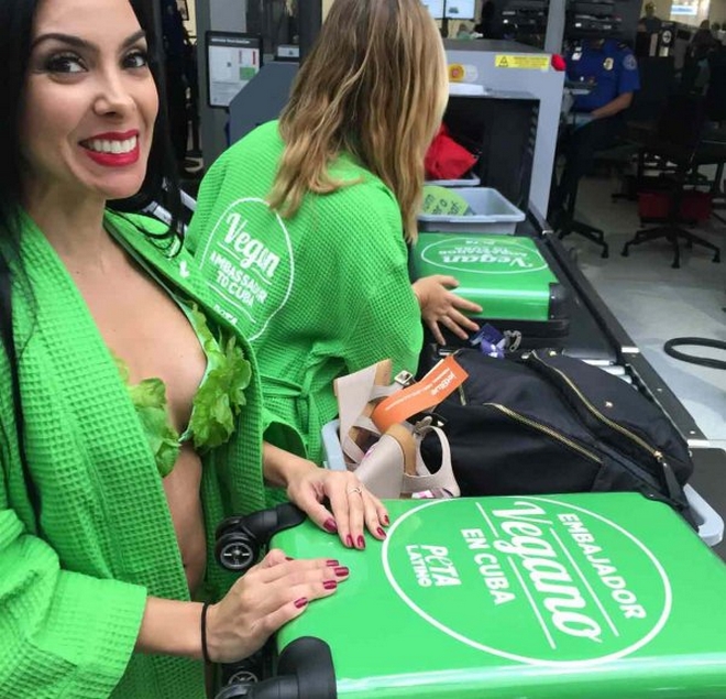 Φορώντας στα επίμαχα σημεία τους φύλλα μαρουλιού, καλλίγραμμες νεαρές βγήκαν στους κεντρικούς δρόμους της Αβάνας για να ενθαρρύνουν τους κατοίκους και τους επισκέπτες να γίνουν χορτοφάγοι.