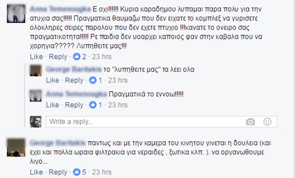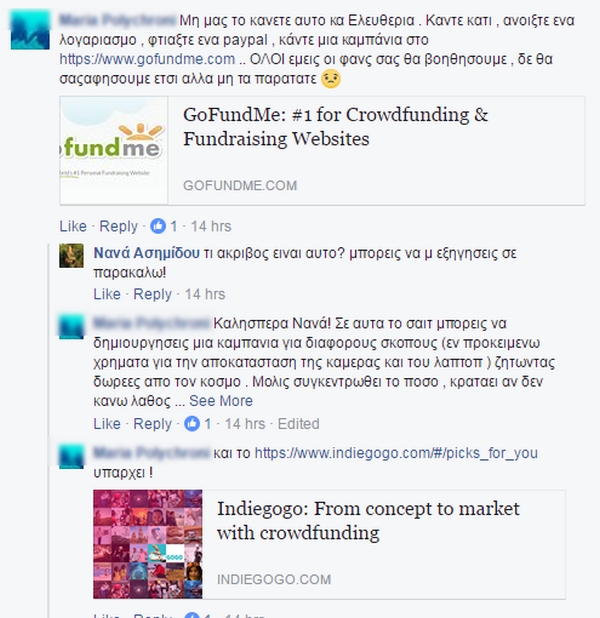 Όπως καταλαβαίνετε, οι χρήστες του ελληνικού διαδικτύου έσπευσαν να δηλώσουν τη στήριξη τους στη δημιουργό, και να της προτείνουν πολλαπλές και διαφορετικές λύσεις.