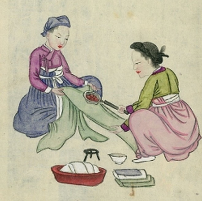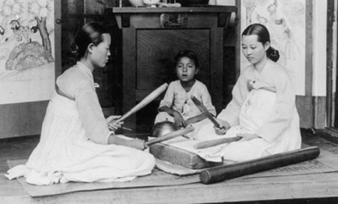 Μέχρι να ανακαλυφθεί αυτή η μέθοδος, συνέβαινε το εξής: η γυναίκα γονάτιζε σε ένα χαλάκι (kinuta) και χτυπούσε το ρούχο με ένα σιδερένιο μπαστούνι. Μια στιγμή όμως, να σας πούμε τι γινόταν την ίδια ώρα στην Κορέα: εκεί υπήρχαν σιδερένια μπαστούνια που προκαλούσαν έναν ευχάριστο ήχο, όταν ήταν σε κίνηση. Μολονότι δεν τον απολάμβαναν όλοι, τα μπαστούνια αυτά υπήρξαν σύμβολα της ασφαλούς ζωής στο σπίτι. Αυτό που συνέβαινε ήταν το εξής: δυο γυναίκες κάθονταν αντικριστά στο πάτωμα, έβαζαν το ύφασμα σε μια ίσια πέτρα ή σε ένα tatumi, κρατούσαν από ένα μπαστούνι (pangmangi) στο κάθε χέρι και χτυπούσαν με συγκεκριμένο ρυθμό, το ρούχο.