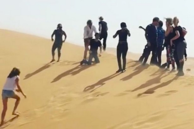 Ο διάσημος τραγουδιστής βρέθηκε στην έρημο του Άμπου Ντάμπι και ζήτησε από έναν φίλο του να γονατίσει για να τον "αποκεφαλίσει", μιμούμενος τους τζιχαντιστές του Ισλαμικού Κράτους