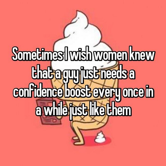 Κάποιες φορές εύχομαι να ήξεραν οι γυναίκες πως και ένας άνδρας χρειάζεται μια ενίσχυση στην αυτοπεποίθηση του, μια στο τόσο. Όπως εκείνες.