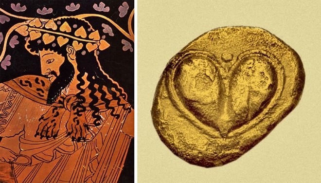 Άλλη θεωρία αναφέρει ότι το εν λόγω σύμβολο αντιπροσώπευε αρχικά το θηλυκό στοιχείο και πιο συγκεκριμένα την γυναικεία λεκάνη ενώ άλλοι εκτιμούν ότι πρόκειται για φύλλο κισσού. Οι αρχαίοι Έλληνες, στα βάζα που απεικόνιζαν τον Διόνυσο, σχεδίαζαν φύλλα κισσού.