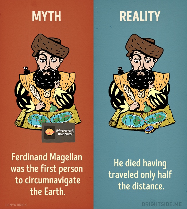 Η αλήθεια είναι πως μπορεί ο Φερδινάνδος Μαγγελάνος να ξεκίνησε το ταξίδι του με σκοπό να κάνει τον γύρο του κόσμου, ή για την ακρίβεια να ανακαλύψει τις Ινδίες, μιας και πίστευαν ότι η Γη ήταν επίπεδη. Ωστόσο ο ίδιος δεν κατάφερε να ολοκληρώσει το ταξίδι του, καθώς έχασε τη ζωή του έχοντας καλύψει μόνο τη μισή απόσταση.