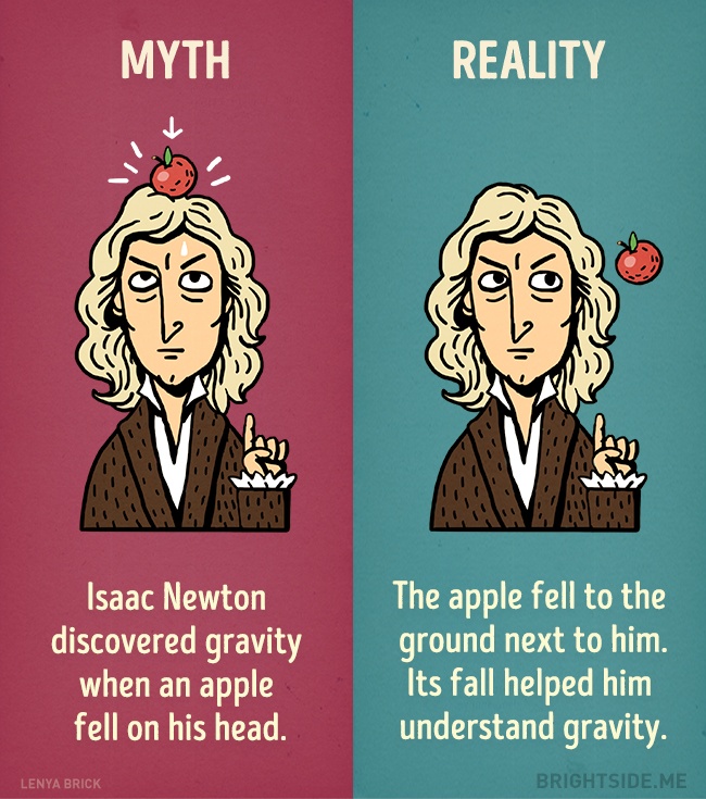Ο Ισαάκ Νεύτων ανακάλυψε την ύπαρξη της βαρύτητας, όταν ένα μήλο έπεσε στο κεφάλι του. Η αλήθεια είναι πως το μήλο δεν έπεσε ποτέ στο κεφάλι του, αλλά δίπλα του και τον βοήθησε να καταλάβει πως λειτουργεί η βαρύτητα.