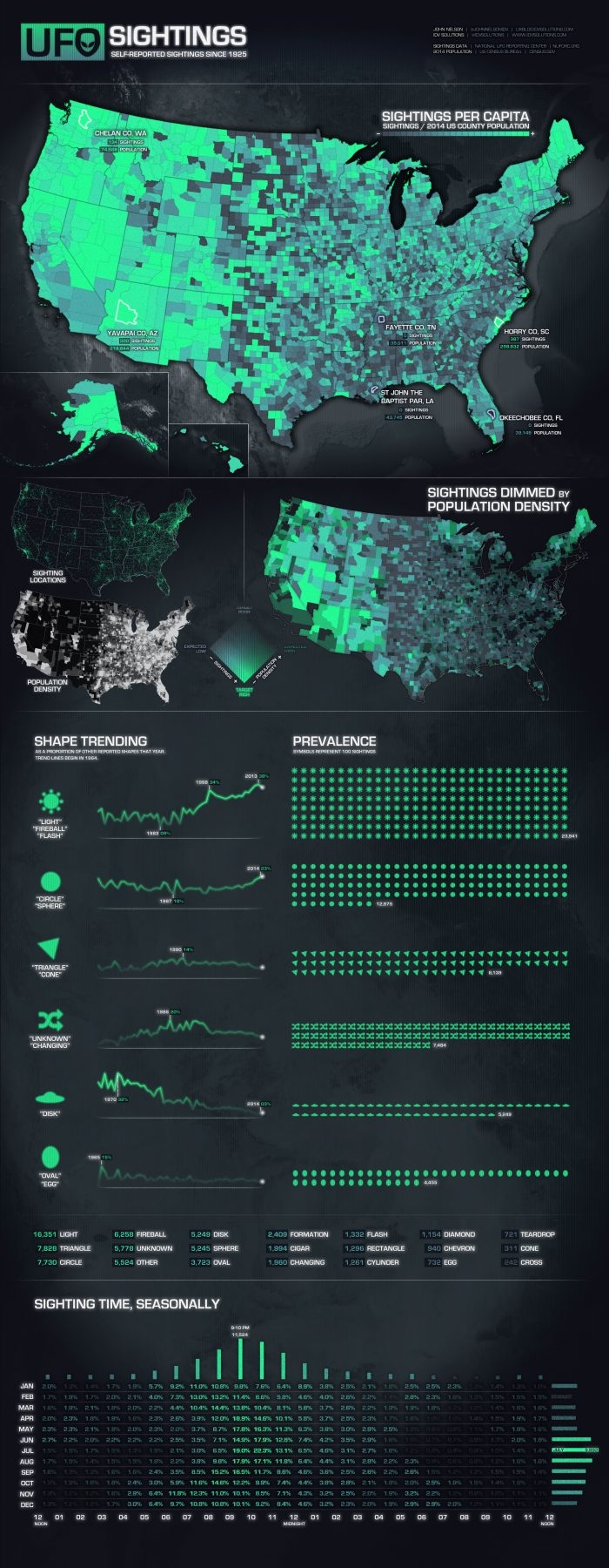 Σχεδόν 100 χρόνια "θεάσεων" αγνώστων ιπτάμενων αντικειμένων από Αμερικανούς πολίτες σε ένα Infographic