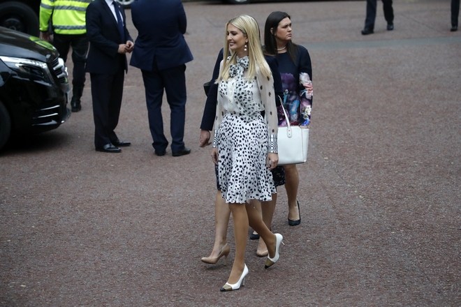 Συγκεκριμένα, στην προγραμματισμένη συνάντηση του προεδρικού ζεύγους με την Πρωθυπουργό της χώρας Τερέζα Μέι, η Ιβάνκα έκανε μια αμφιλεγόμενη εμφάνιση.