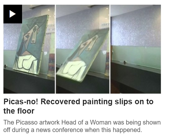 Το απίστευτο και συνάμα τραγελαφικό περιστατικό της πτώσης του πολύτιμου έργου δια χειρός του Πικάσο παρουσίασε και το BBC χρησιμοποιώντας μάλιστα τον χιουμοριστικό τίτλο “”Picas-no!”.