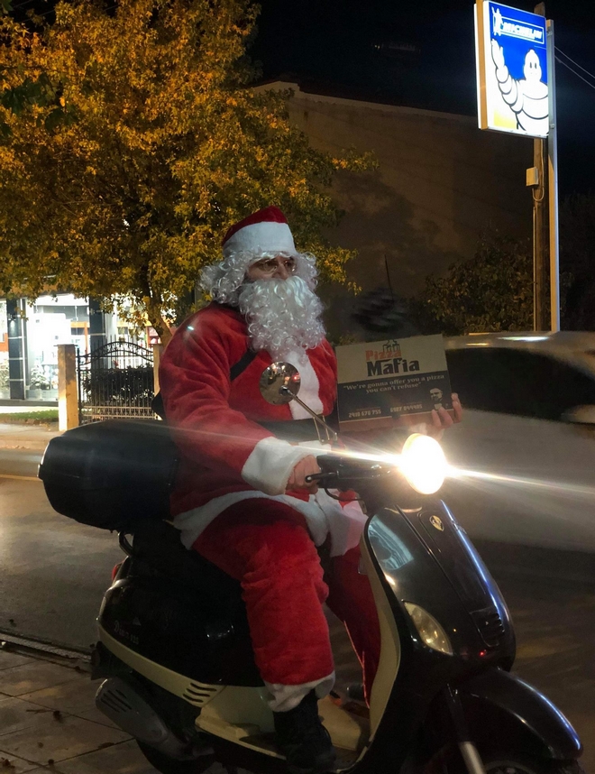«Η απόφαση, εξηγεί, να ντυθώ Άγιος Βασίλης έγινε σε συνεννόηση με τον ιδιοκτήτη της πιτσαρίας κ. Χρήστο Τζίκο που με στήριξε σε όλο αυτό…». Και βέβαια η ανταπόκριση του κόσμου ήταν το κάτι άλλο στον καλοσυνάτο ντελιβερά που μαζί με το φαγητό, φέρνει και το πνεύμα των Χριστουγέννων στα σπίτια των Λαρισαίων!».