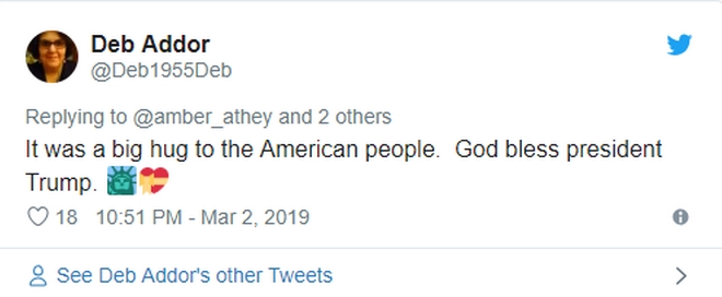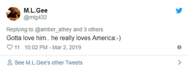 “Ήταν μια μεγάλη αγκαλιά στον αμερικανικό λαό” έγραψε ένας χρήστης, με έναν άλλον να τον…σιγοντάρει, λέγοντας “πραγματικά αγαπάει την Αμερική”. Στον αντίποδα, πολλοί τον επέκριναν. “Νομίζει ότι είναι ο Πούτιν ή ο Κιμ”, “Μπορεί η σημαία να κάνει μήνυση για παρενόχληση;”, έγραψαν.