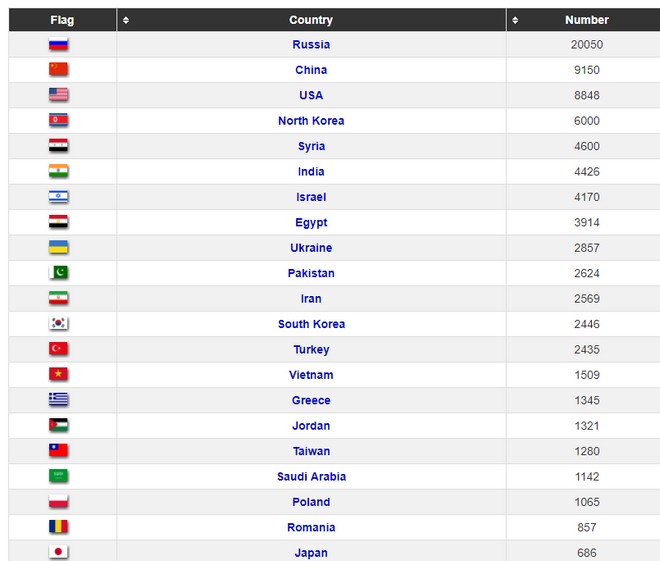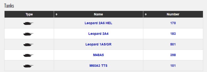 Η χώρα μας, με τα 1345 τανκς συνολικά, εμφανίζεται στην 15η θέση της παγκόσμιας κατάταξης με τους γείτονες μας, την Τουρκία, να έχει όπως αναφέραμε και παραπάνω, 2.435.