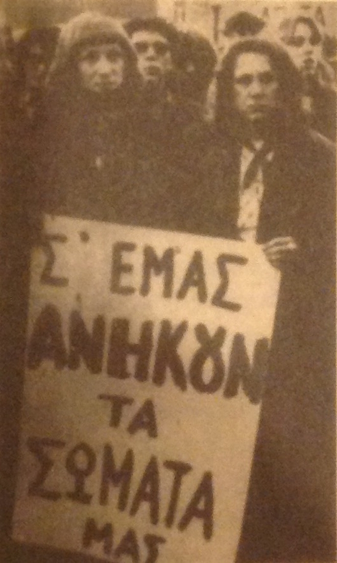 Απλώσαμε το πανό, οι περαστικοί άρχισαν να φτιάχνουν κλοιό γύρω μας. (…)Η Αλόμα άρχισε να διαβάζει τα αιτήματα με τη ντουντούκα. (…) Η πορεία ξεκίνησε, κατεβαίνοντας την Πανεπιστημίου ο κόσμος είχε σταματήσει, κοιτούσε ήσυχα και περίεργα.