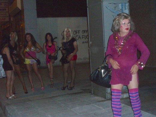 Έκανε ζέστη, είχε εκείνο το “παλιό”, το άσχημο νέφος. Βρήκαμε τις τραβεστί μαζεμένες στα Προπύλαια, περιποιημένες, στα μαλλιά, στα ρούχα τους. Μας πλησίασε η Αλόμα κρατώντας ντουντούκα. Δεν τη γνώρισα αμέσως με το make up, φορούσε θυμάμαι μαύρο παντελόνι, λίγο καμπάνα κάτω, το μαλλί της σγουρό.