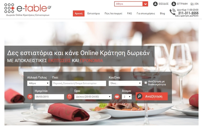 Η αρχή έγινε πριν από οκτώ μήνες, από την e-table.gr, την υπηρεσία, που όπως προδίδει και το όνομα της, προσφέρει την δυνατότητα της on line κράτησης τραπεζιού σε εστιατόρια. “Τον Απρίλιο πραγματοποιήσαμε πάνω από 1.500 κρατήσεις και η έως τώρα πορεία δείχνει να είναι σταθερά ανοδική χωρίς εντυπωσιακά ξεσπάσματα. Η ανάπτυξη εκτιμούμε ότι δεν θα είναι εκρηκτική, όπως αυτή του e-food.gr. H αιτία είναι ότι ο Έλληνας δεν έχει μάθει να κάνει κράτηση σε εστιατόριο, από την στιγμή που όπου πηγαίνουμε συνήθως βρίσκουμε τραπέζια με αποτέλεσμα να μπούμε στην λογική αυτή. Το στοιχείο που εμείς δίνουμε σαν αξία στο e.table.gr είναι ότι πέρα από το ότι ανακαλύπτεις εστιατόρια που ίσως δεν γνώριζες την ύπαρξη τους, κάνεις πολύ εύκολα την κράτηση και το σημαντικότερο έχεις εκπτώσεις τις περισσότερες ημέρες της εβδομάδας καθώς και άλλα οφέλη αν χρησιμοποιείς την υπηρεσία επανειλημμένα”.