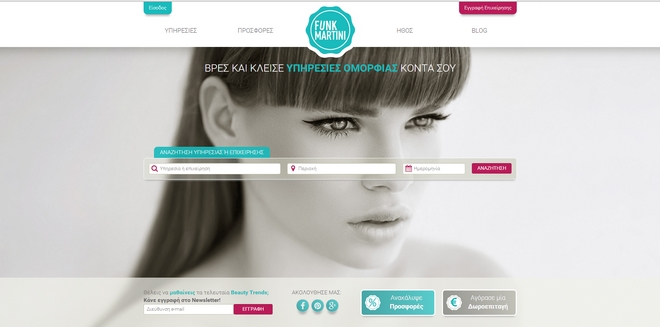 Δημιούργημα μόλις τριών μηνών είναι το https://www.funkmartini.gr/ το οποίο δίνει την δυνατότητα στις επισκέπτριες του να κλείσουν on line υπηρεσίες ομορφιάς, αδυνατίσματος και ευεξίας. Παρά το σύντομο της παρουσία του έχει καταφέρει και τον τελευταίο μήνα να κλείσει με επιτυχία περισσότερα από 300 ραντεβού. Πέρα από τον Απόστολο Αποστολάκη στην funkmartini.gr έχει επενδύσει και ο Philipp Brinkmann της travelplanet24.com.