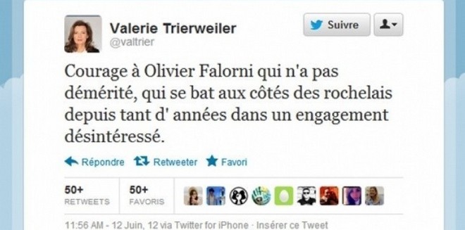 Η Trierweiler έμαθε από το ραδιόφωνο πως ο Hollande επρόκειτο να στηρίξει τη Royal. Εκνευρισμένη, του τηλεφώνησε και ακολούθησε μονόλογος αρκετών λεπτών -και πολλών ύβρεων. Τον ενημέρωσε πως είχε έλθει η ώρα να δει για τι είναι ικανή. Μαζί του θα το έβλεπε και όλη η Γαλλία, αφού η επίθεση έγινε μέσω social network, σε αυτό που έμεινε στην ιστορία ως Tweetgate. Από αυτό χαμένη βγήκε η επιτιθέμενη. Πέραν του ότι τη μίσησαν τα παιδιά του συντρόφου της (έκτοτε την αγνοούσαν), “πλήγωσε” τη δημόσια εικόνα του προέδρου και ήταν πολλοί εκείνοι που εκτίμησαν ότι δεν θα μείνει για πολύ… στην εικόνα. Δικαιώθηκαν, όταν ο Hollande πέρασε στην επόμενη: την -παντρεμένη και μητέρα δυο παιδιών- ηθοποιό Julie Gayet, με την οποία είχαν γνωριστεί σε τηλεοπτικό σποτ, προεκλογικού χαρακτήρα. Για την ακρίβεια, τους είχε γνωρίσει το 2011 η Royal!