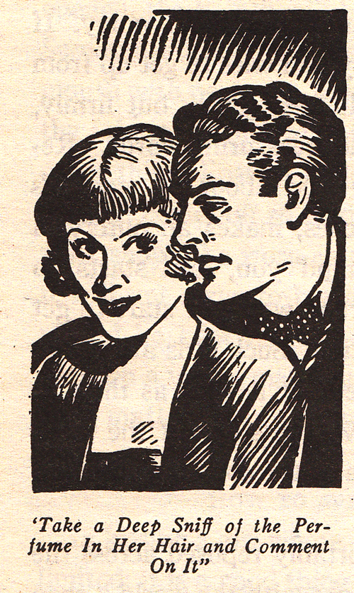 Μάλιστα, ο συγγραφέας συνιστά στο παρτενέρ να μυρίσει το άρωμα στα μαλλιά της και να κάνει ένα σχόλιο για αυτό, ψιθυρίζοντας της.