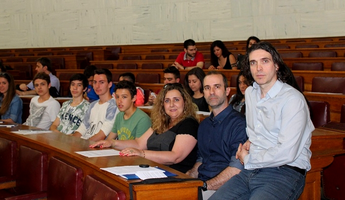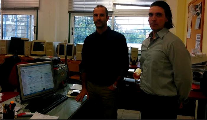 Σε ένα κοινό τραπέζι. Με τον εμπνευστή της πρωτοβουλίας και ιδρυτή του ελληνικού σχολείου Βικιπαίδειας, Μάνο Κεφαλά και τους «μαθητές» του, καθηγητή Πληροφορικής Γιώργο Παπαμήτσο και την διευθύντρια του 2ου Γυμνασίου Καισαριανής και καθηγήτρια Πληροφορικής, Μαρία Μπάκου.