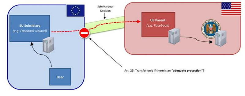 Τα προσωπικά δεδομένα των Ευρωπαίων πολιτών προστατεύονται από ευρωπαϊκή οδηγία που ενσωματώνεται στις εθνικές νομοθεσίες των κρατών μελών. Ένας Έλληνας πολίτης για παράδειγμα μπορεί να προσφύγει στην ελληνική Αρχή Προστασίας Προσωπικών Δεδομένων και να κινηθεί νομικά σε περίπτωση που θίγεται. Όταν όμως τα δεδομένα του μεταφέρονται σε μια χώρα εκτός Ευρωπαϊκής Ένωσης, χάνει αυτό το δικαίωμα, διότι εκεί δεν ισχύουν οι νόμοι της χώρας του. Γι’ αυτό η ευρωπαϊκή νομοθεσία απαγορεύει τη μεταφορά προσωπικών δεδομένων σε χώρες που δεν εξασφαλίζουν ένα ικανοποιητικό επίπεδο προστασίας, όπως οι ΗΠΑ.
