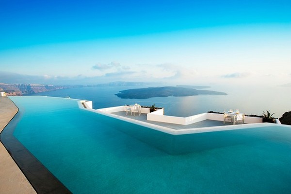 Πλαφ! Ο πιο ανακουφιστικός ήχος στον κόσμο είναι εκείνος της βουτιάς. Και μάλιστα σε μια πρασινογάλανη πισίνα με θέα που κόβει την ανάσα. Δεν είναι τυχαίο ότι ανάμεσα στις δέκα ωραιότερες πισίνες του κόσμου, όπως τις φωτογράφισε το περιοδικό Traveller, δύο είναι στην Σαντορίνη. Βέβαια όπως θα δείτε το Μπαλί, οι Μαλβίδες και η Σικελία δεν πάνε πίσω….