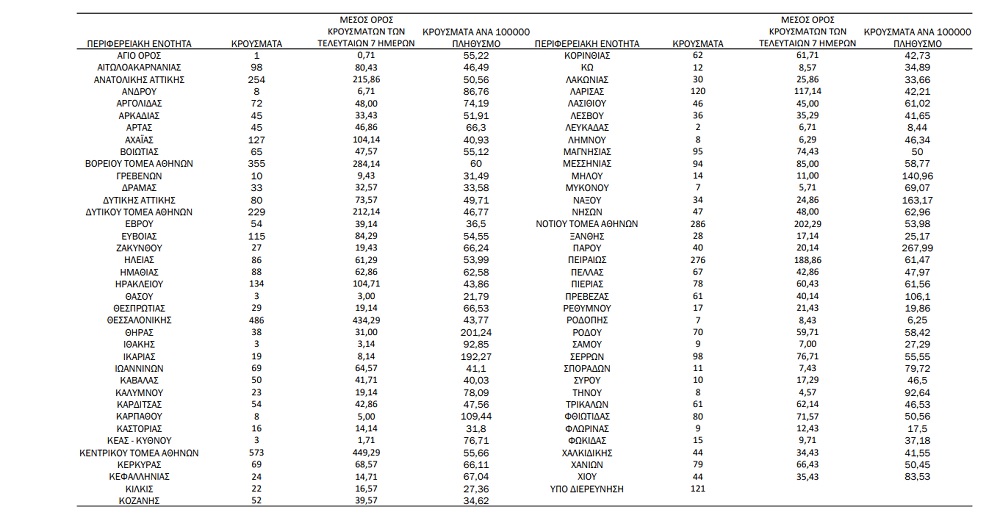 Αναλυτικά η διασπορά των νέων κρουσμάτων σήμερα στην υπόλοιπη Ελλάδα