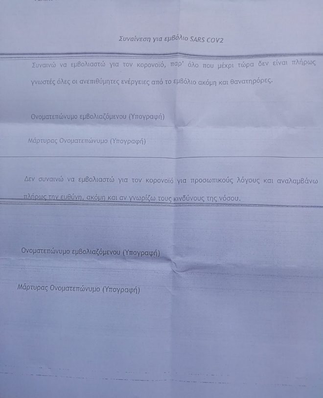 Το θέμα έκανε γνωστό λίγο νωρίτερα ο πρόεδρος της ΠΟΕΔΗΝ, κ. Γιαννάκος, ο οποίος ανέφερε ότι “στο Νοσοκομείο Καρδίτσας, σήμερα που πήγε να εμβολιαστεί το υγειονομικό προσωπικό τους μοίρασαν δήλωση που θα πρέπει να υπογράψουν ότι συναινούν στον εμβολιασμό, παρ’ όλο που μέχρι τώρα δεν είναι γνωστές όλες οι ανεπιθύμητες ενέργειες από το εμβόλιο ακόμη και θανατηφόρες. Στο ίδιο έντυπο θα πρέπει να υπογράψουν όσοι συνάδελφοι δεν συναινούν στον εμβολιασμό για προσωπικούς λόγους και αναλαμβάνουν πλήρως την ευθύνη”.