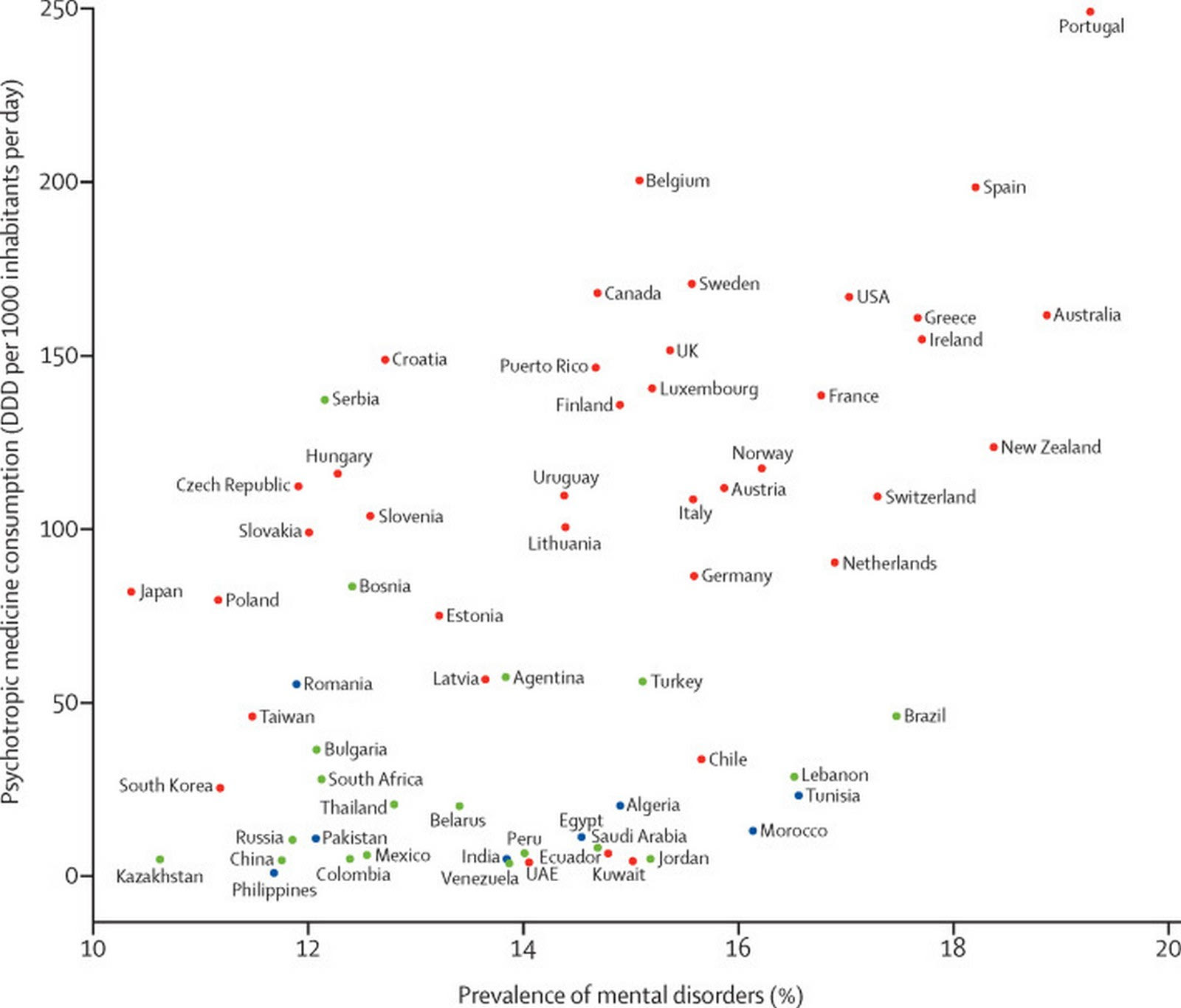 Ειρήσθω εν παρόδω, είμαστε στο Νο13 της παγκόσμιας λίστας με τη χρήση αντικαταθλιπτικών, με 73.1 χρήστες ανά 1.000 πολίτες. Στο Νο1 είναι η Ισλανδία (154.3) και ακολουθεί η Πορτογαλία (150.5).
