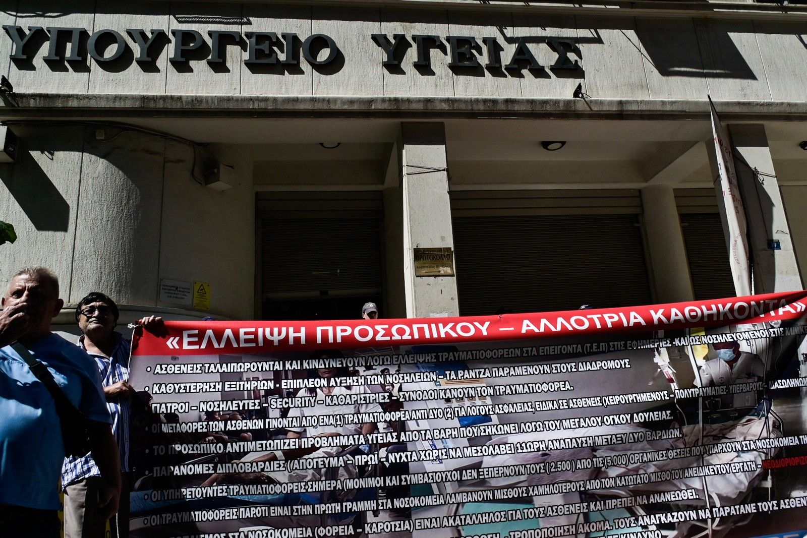 Έξω από το υπουργείο Υγείας συγκεντρώθηκαν δεκάδες τραυματιοφορείς ζητώντας προσλήψεις και ένταξη στα βαρέα και ανθυγιεινά.