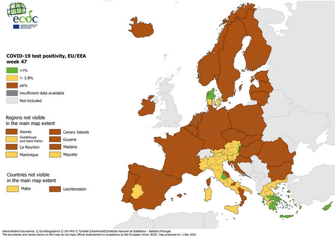 ECDC: “Σε βαθύ κόκκινο” η Ελλάδα – Πού εντοπίζεται η μετάλλαξη Όμικρον στην ΕΕ