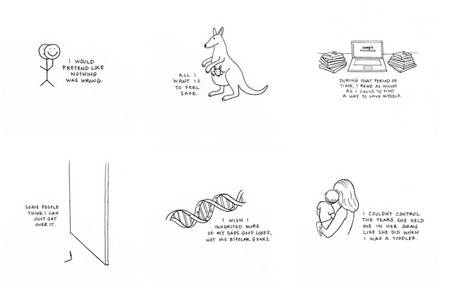 Μέσα από τα παρακάτω σκίτσα, καυτηριάζονται οι παρανοήσεις και τα στερεότυπα γύρω από την κατάθλιψη αλλά και καταγράφεται η αγωνία της καθημερινότητας των ατόμων που τις περισσότερες φορές, δεν μιλούν για την πάθηση τους.