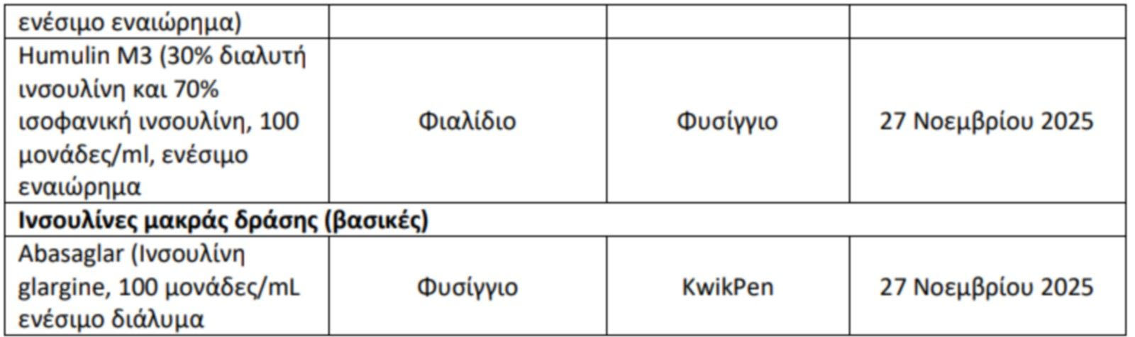 Τα σκευάσματα ινσουλίνης που έχει διακοπεί η κυκλοφορία τους στην Ελλάδα – Πίνακας