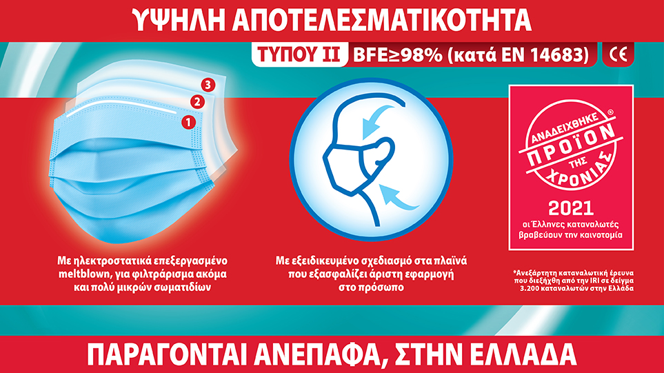 Πέραν του εμβολίου, σημαντικός αποτρεπτικός παράγοντας στη μετάδοση της COVID-19 είναι η εφαρμογή μέτρων ατομικής προστασίας και η χρήση μάσκας, η οποία είναι σημαντικότερο από ποτέ να εξασφαλίζει αποδεδειγμένη προστασία υψηλών επιδόσεων!