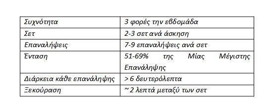 Τα βασικά χαρακτηριστικά των συγκεκριμένων ασκήσεων, συνοψίζονται στον πίνακα που ακολουθεί: