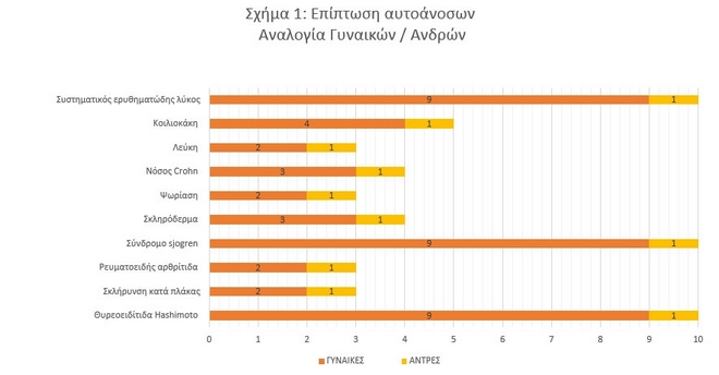 Οι αυτοάνοσες διαταραχές εμφανίζονται έντονα σε νεαρά άτομα και κυρίως σε γυναίκες, σε άτομα που διαμένουν σε αστικές περιοχές και ειδικά στη Βόρεια Ελλάδα.