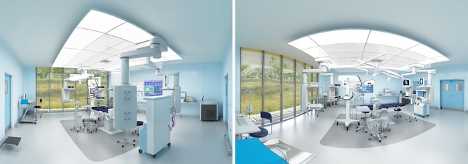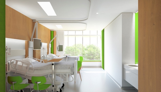 Δεν θα υπάρχουν παρά μόνο μονόκλινα και δίκλινα δωμάτια νοσηλείας, με ανεμπόδιστη θέα προς το δάσος, ενώ για τις αίθουσες χειρουργείων έχουν προβλεφθεί μεγάλα ανοίγματα, στραμμένα προς το πάρκο, επιτρέποντας τη διέλευση φυσικού φωτός.
